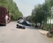 据现场目击者描述,事故发生时,一辆红色轿车与一辆黑色货车发生了碰撞。红色轿车瞬间失控,翻滚了几圈后才停了下来。而黑色货车则被撞得面目全非,车头严重变形。